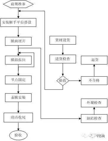2、膜結構安裝工藝框圖