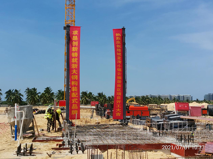 今年是中國共產(chǎn)黨成立100周年,百年恰是風(fēng)華正茂。2021年7月1日上午10點(diǎn)08分,在甲方單位、監理單位等領(lǐng)導的共同見(jiàn)證下,由浙大鋼構承建的海南綠城藍灣小鎮繼2019年開(kāi)工的香樟苑以來(lái),第五個(gè)鋼結構裝配式高端住宅項目——云棲居南區鋼結構工程項目首根鋼柱吊裝順利完成,項目正式進(jìn)入鋼結構主體施工階段。